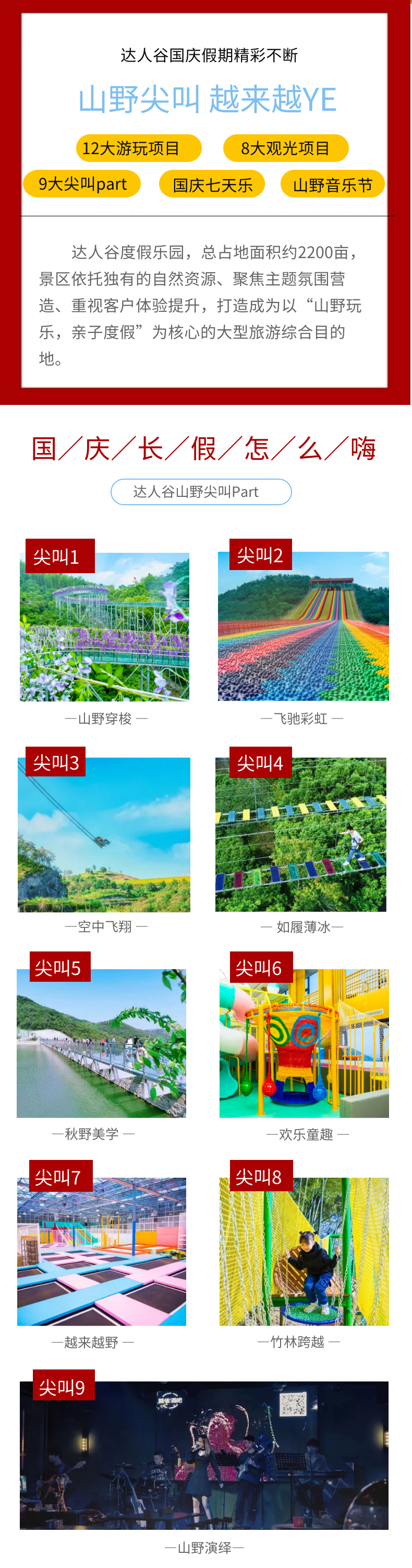 【门票】只要78元,绿野达人谷山野尖叫季休闲票,畅玩景区9大玩乐项目+8大观光项目!开启国庆惊喜之旅!山野里的音乐节等你来嗨!