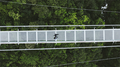 桥面全部采用高强度特种航空用玻璃铺设,同时也选用国内质量dǐng尖的钢索,安全性能高!大家可放心游玩。